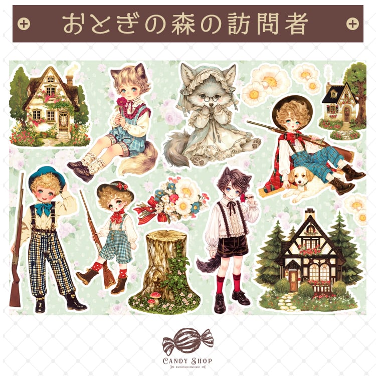 絵本みたいなおうちや切り株もコラージュしやすいアイテムです!