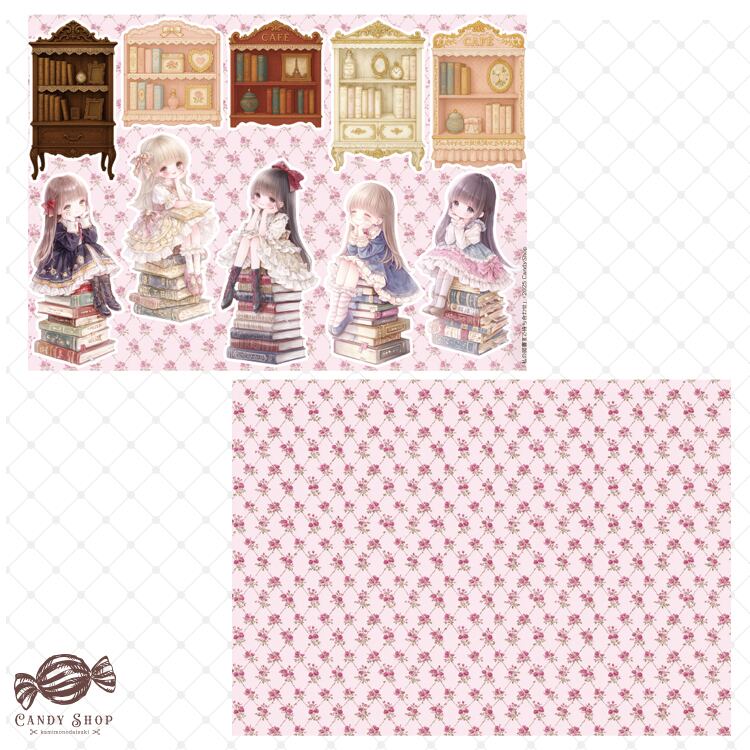 アンティークブックに囲まれた少女たちのコラージュ素材。
