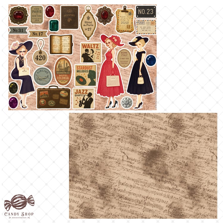 好きなヴィンテージ素材を増やしたくて作った、いろんなアイテムを詰め込んだコラージュシートです✨️