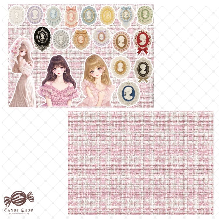 カメオとロマンティックドレスの少女たちがテーマのコラージュシート❤