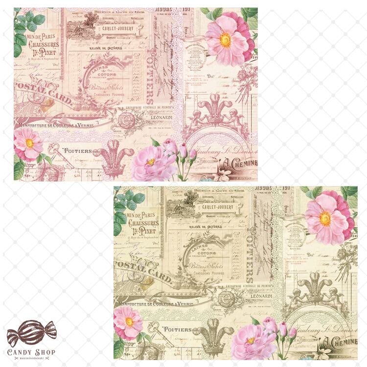 アンティークの手紙やレース、クラシカルな活版印刷を思わせるフレンチヴィンテージ調のデザインペーパー。
