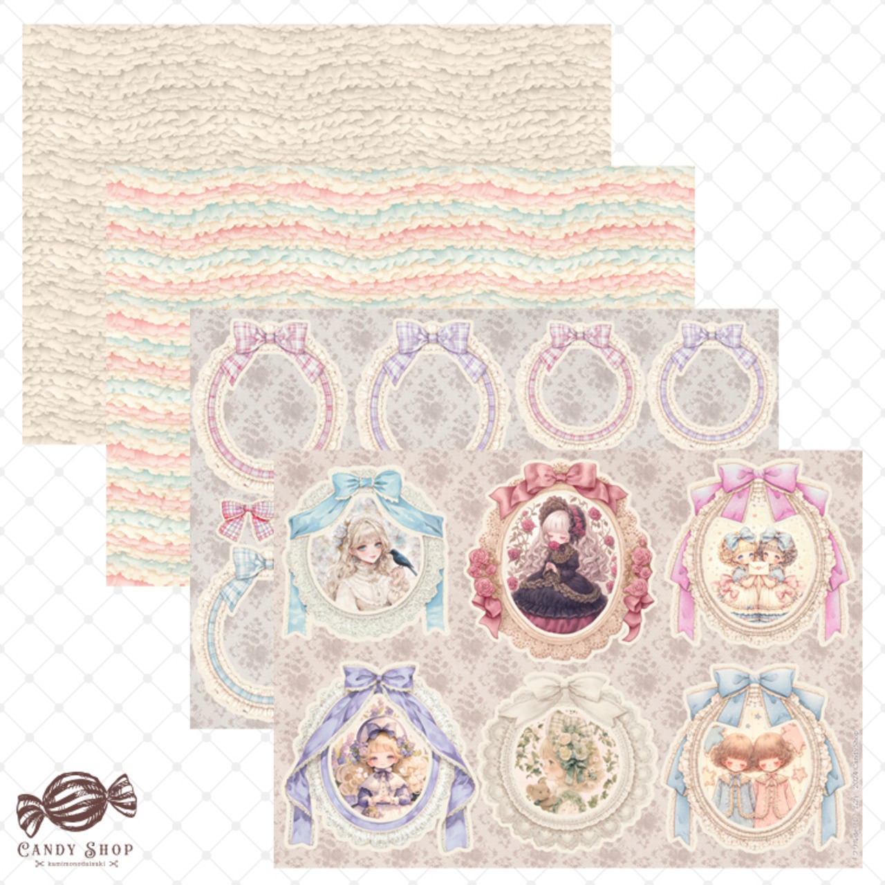 セットの両面背景ペーパーはたっぷりフリルのデザインです。