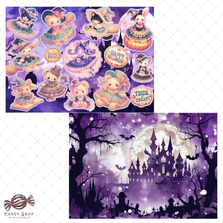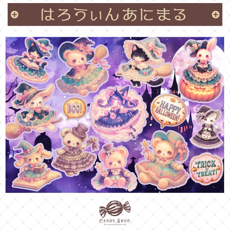 魔法使いのドレスを着たアニマル達のコラージュシート!