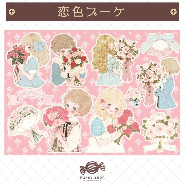 クラシカルで愛らしい花束を持つ子どもたちが描かれたコラージュシートです。