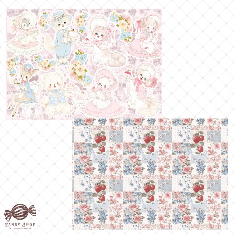おいしそうないちごのケーキでパーティするアニマルたちのコラージュシート✨️